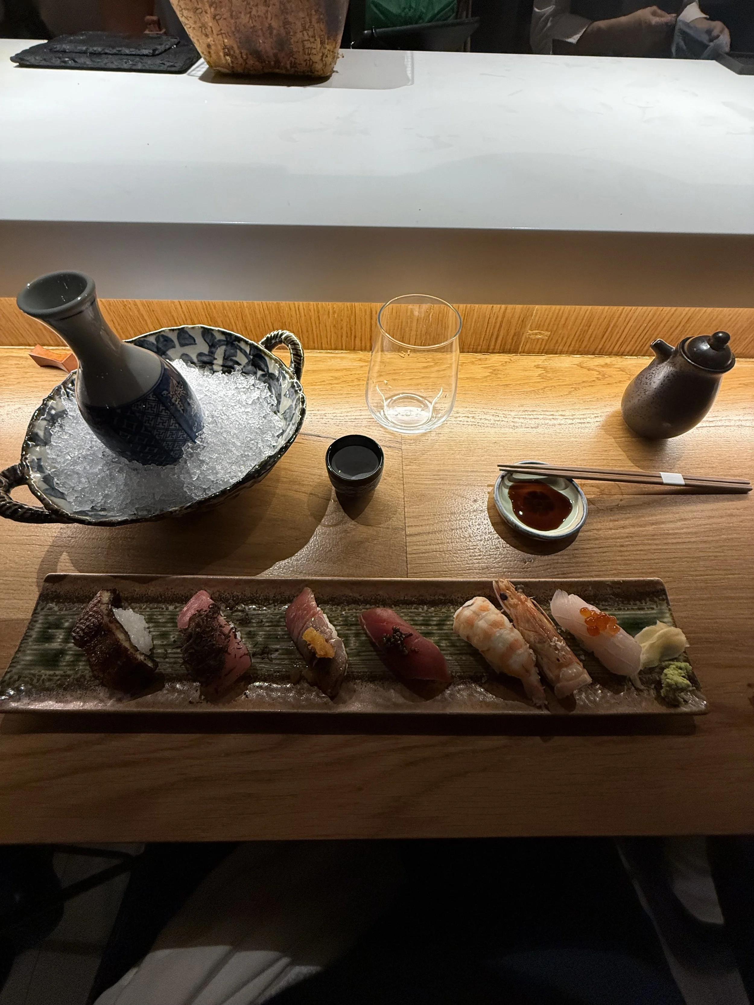 As each piece of nigiri was placed before me, the chef shared stories: where the fish came from, how it was prepared, why this particular topping or seasoning was chosen. I learned about the toro (tuna belly), its marbling and richness carefully balanced with a touch of citrus. I watched as salmon was delicately sliced and molded over perfectly seasoned rice, the fish's coral hue almost glowing in the soft light.