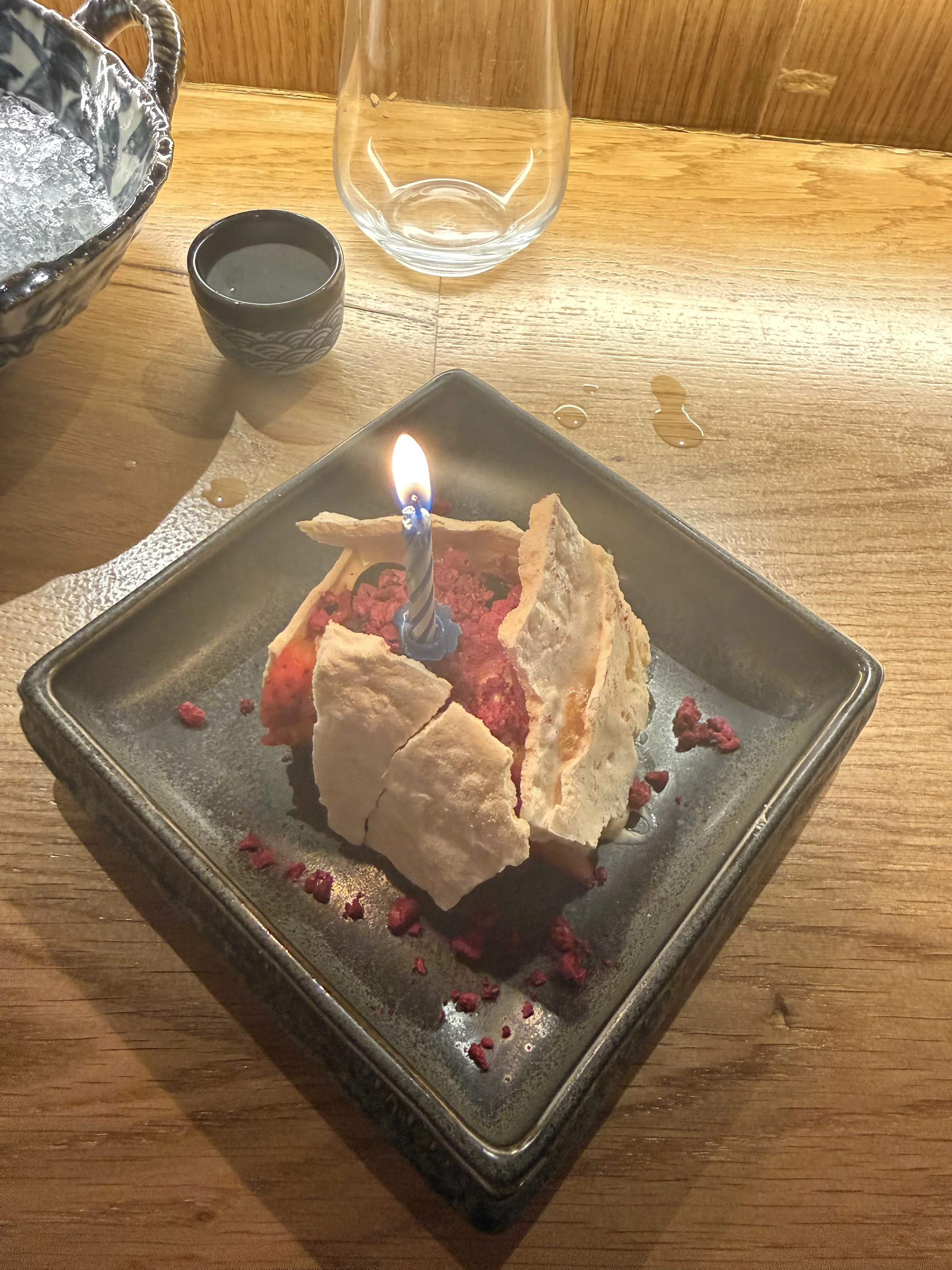 As the meal drew to a close, the chef presented a final piece, a deserrt with a flourish I hadn't expected: a lit candle. He smiled and said, "For your birthday." The gesture was simple, but it landed with profound tenderness. I felt seen. Not pitied for dining alone, but respected for choosing this experience.