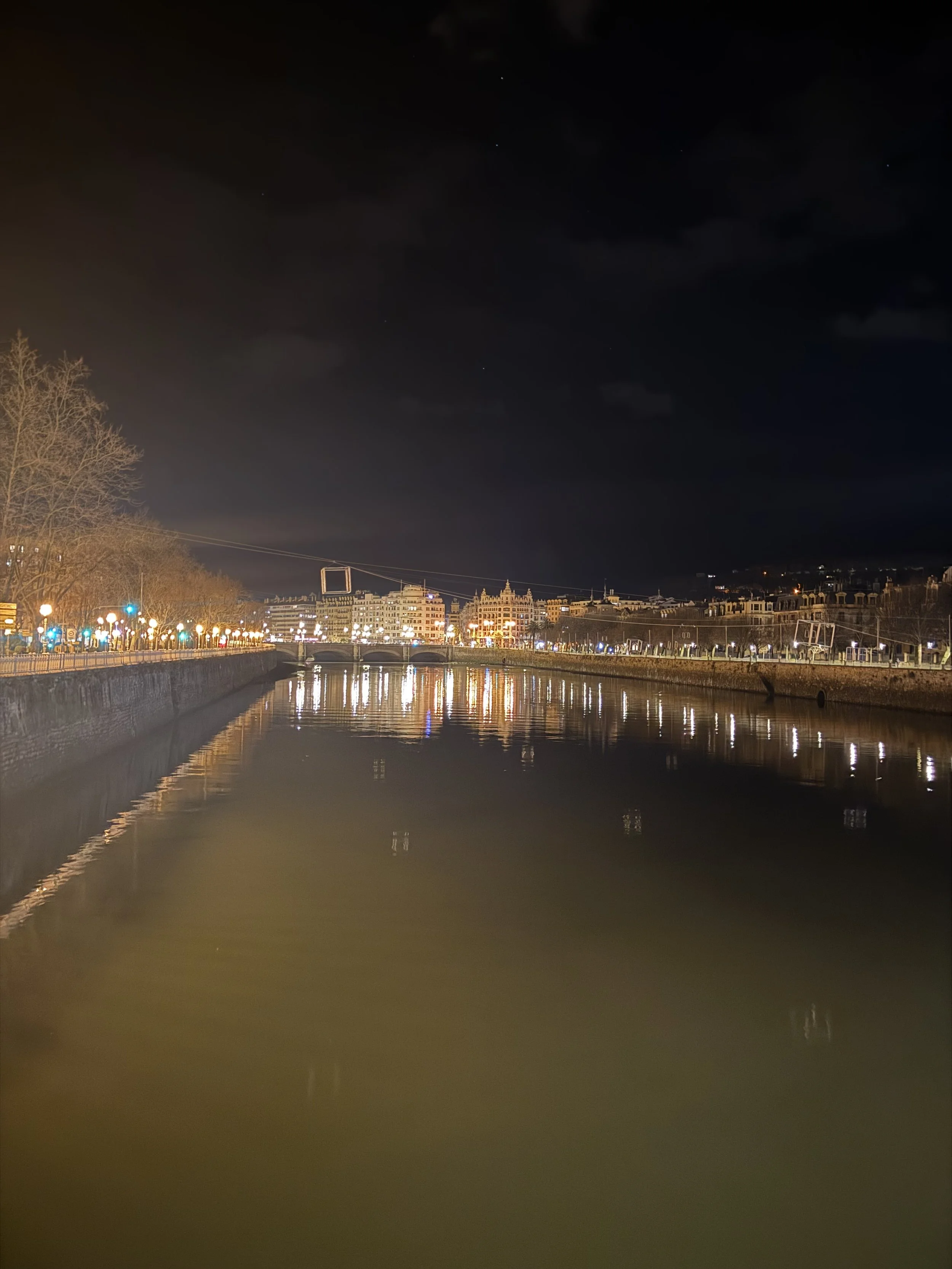 We walked slowly, talking about life and studies and the strangeness of being expats in our thirties. The river flowed quietly beside us, the tide rolling in from the Cantabrian Sea. The city lights reflected on the water's surface, shimmering and shifting with each small wave.